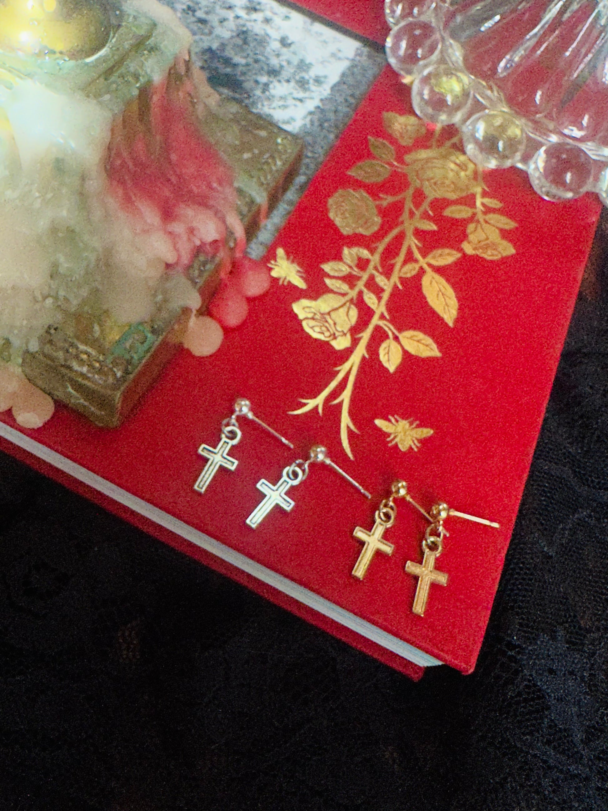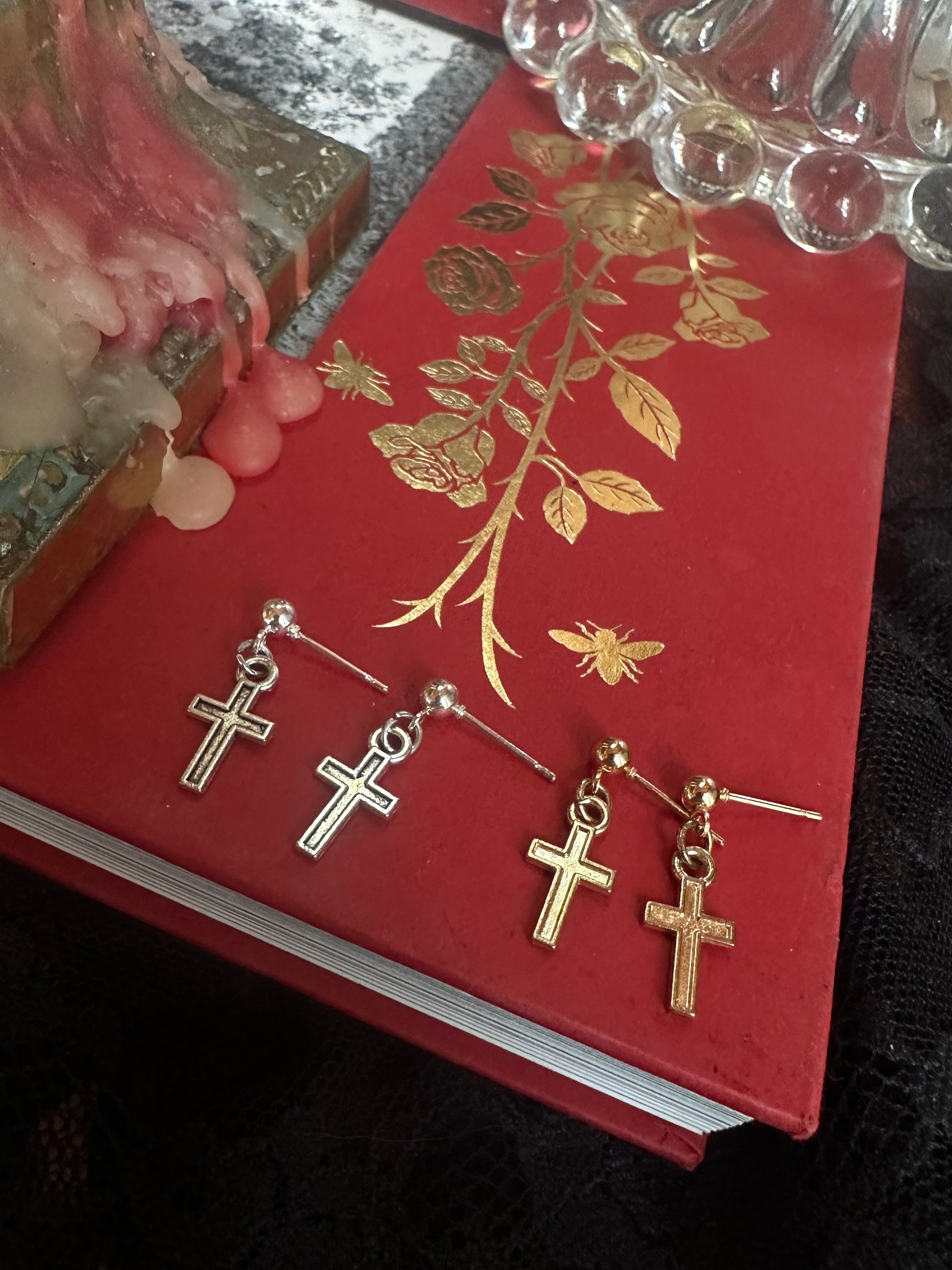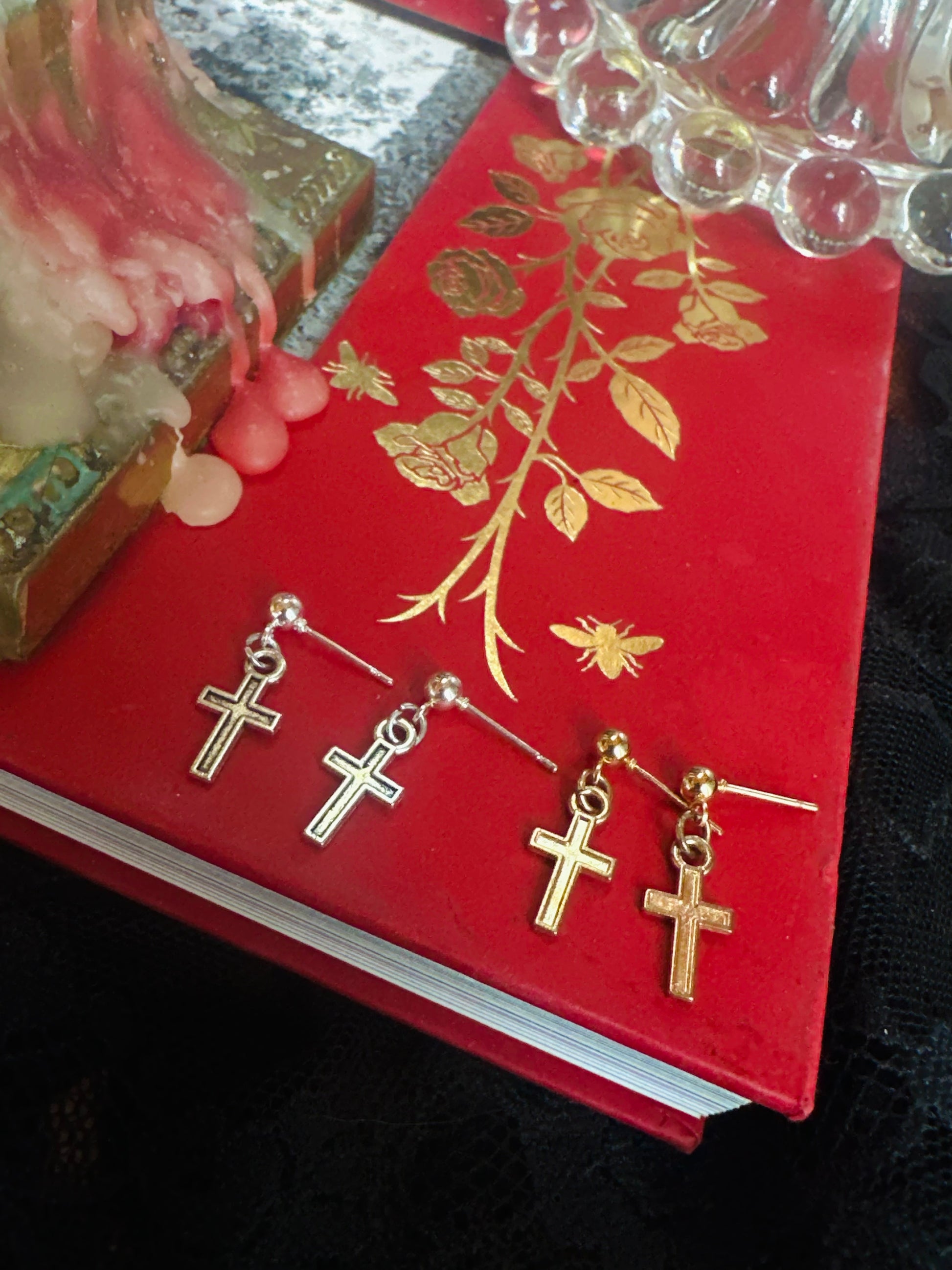 Thrifted these vintage mini cross pendants from Son of a Vet thrift store in El Sereno CA, set them on simple hypoallergenic studs.