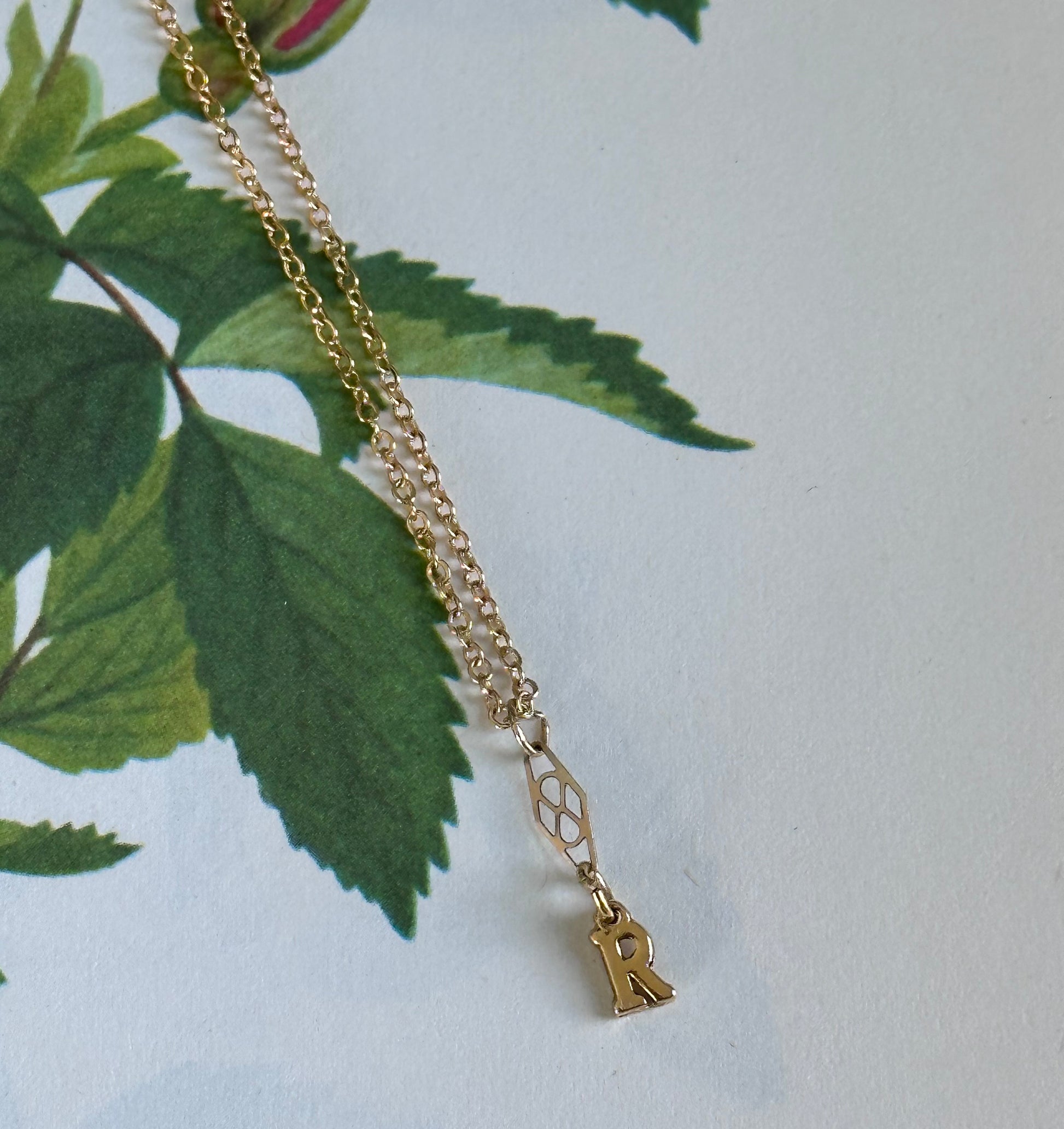 Infiniti charm with a mini gold letter R charm