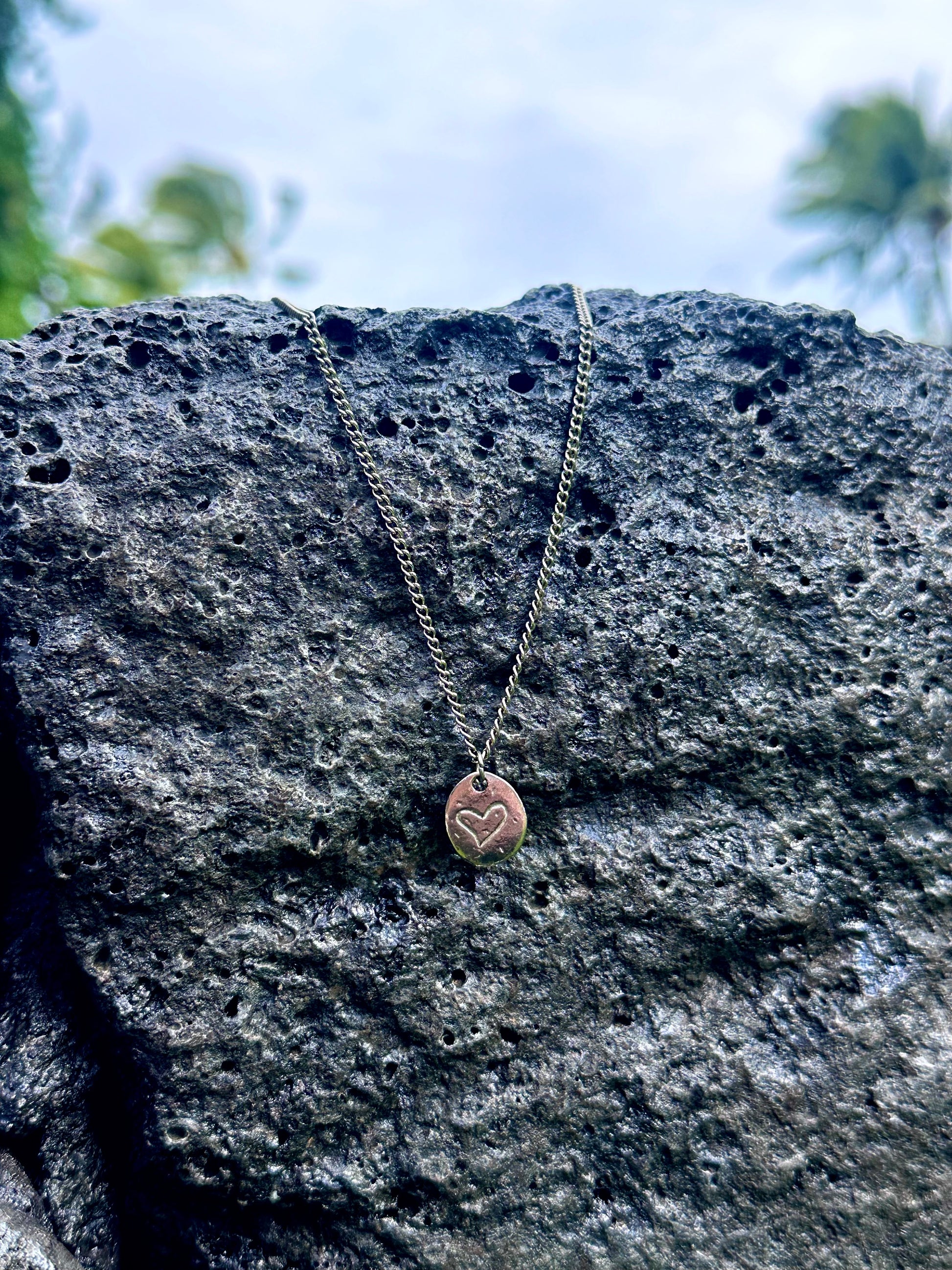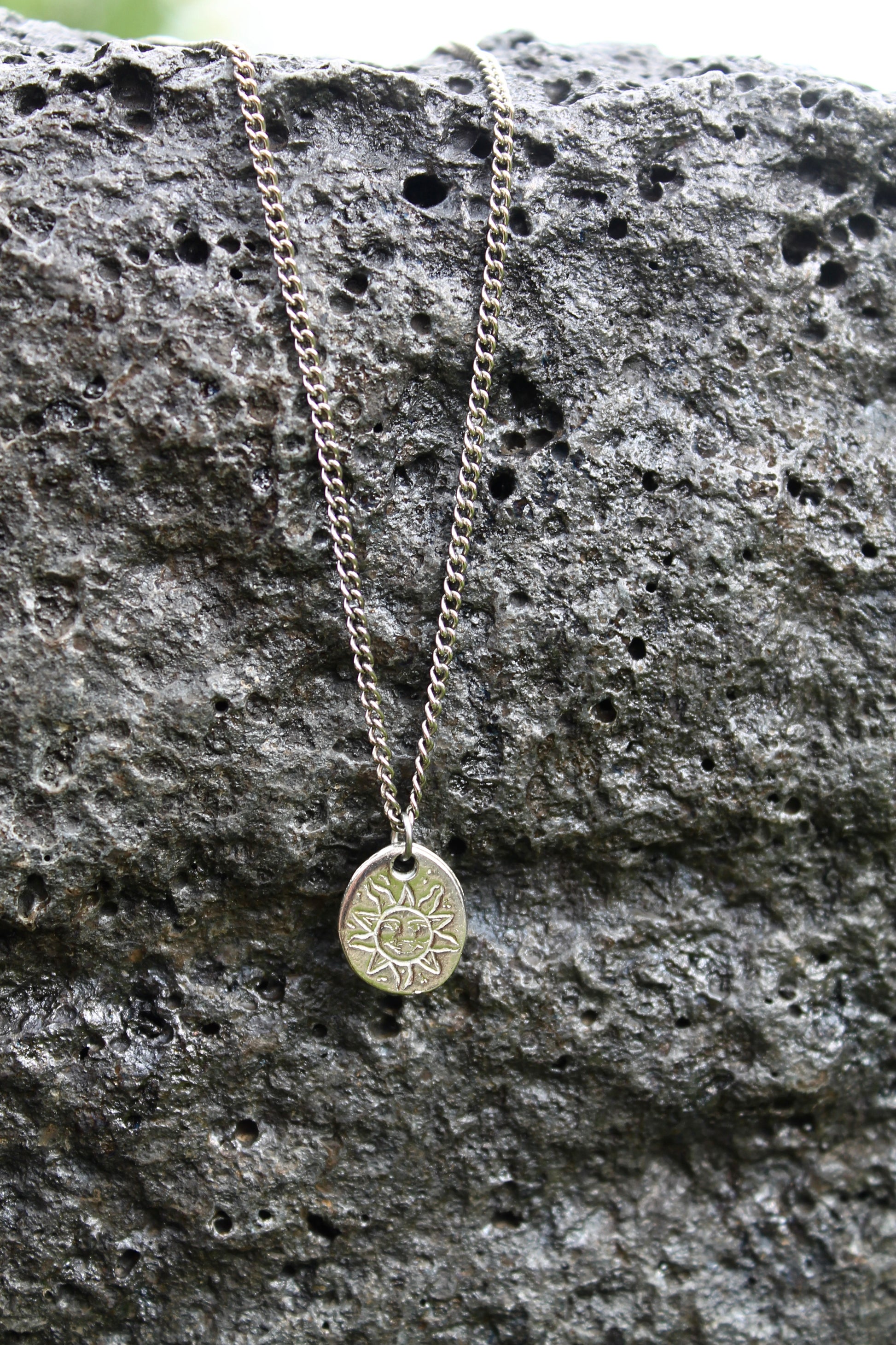 Handcrafted in sterling silver, this mini pendant features an engraved sun design on one side and a heart on the other, set on a cable chain. Whether worn as a reminder of self-love or gifted to someone who brightens your world, this necklace carries the energy of the heart’s truest light.